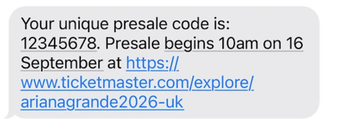 Please note: Ariana Grande's London artist presale is hosted on Ticketmaster and AXS. Laylo powered the presale registration and code delivery; purchases, queues, and seat maps are managed directly by our ticketing partners. For live presale questions on September 16, please contact Ticketmaster or AXS support.