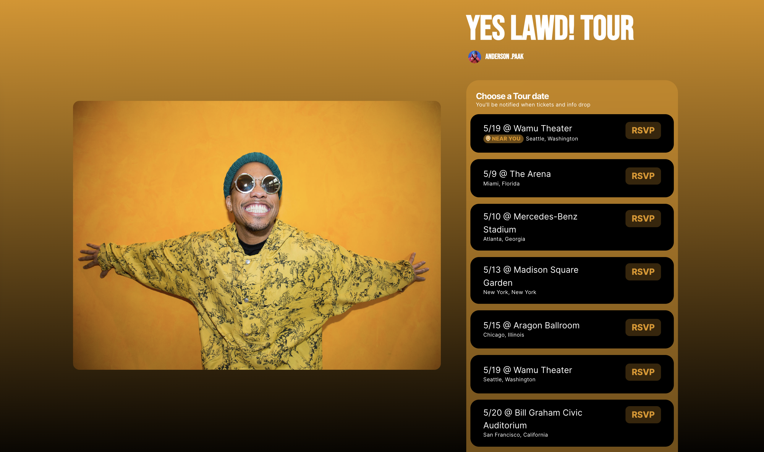Using multidrop can drastically increase ticket conversions. When fans open the drop link, the nearest event will automatically appear at the top based on their location.