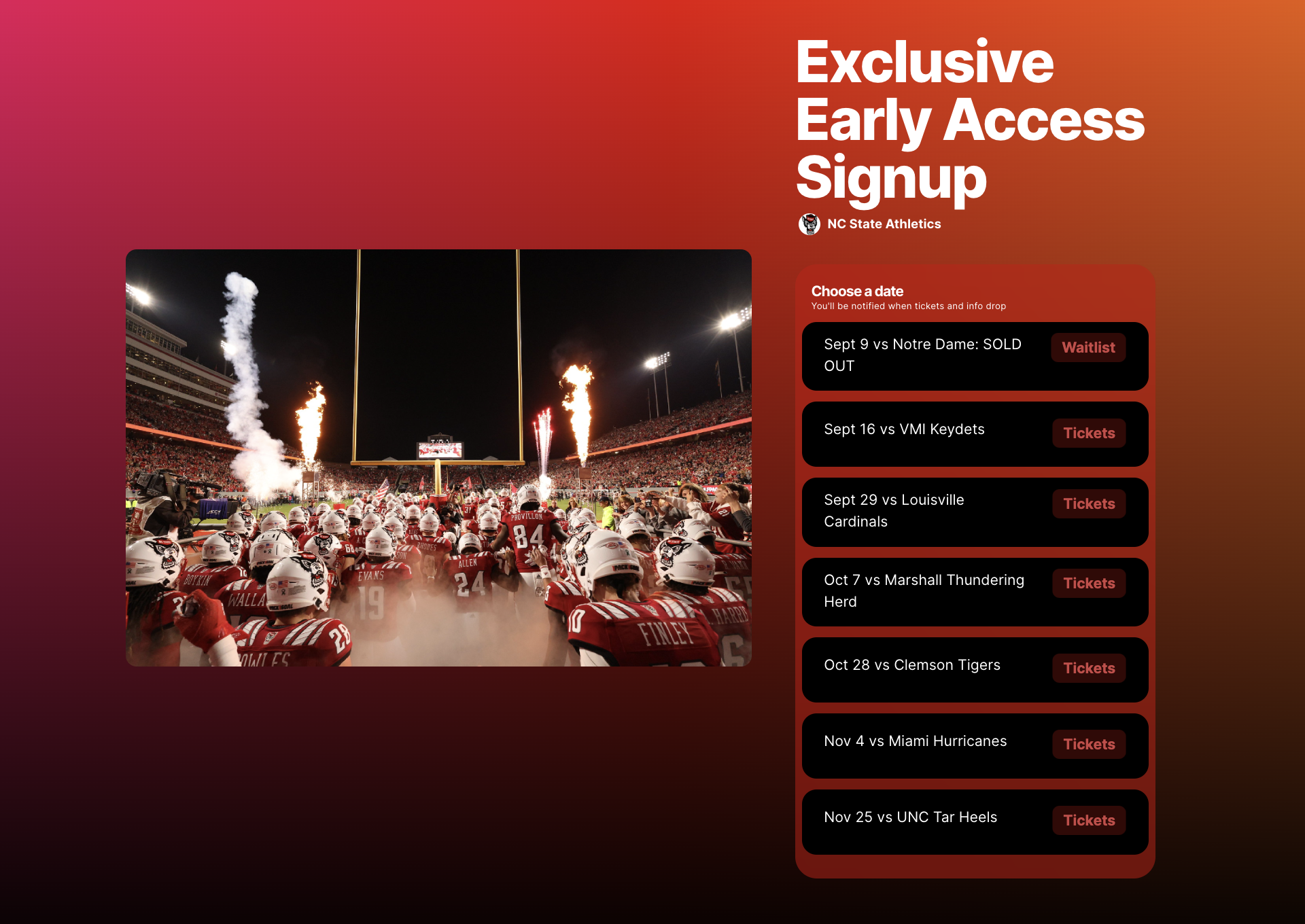 In less than a minute a fan can find their event and RSVP to get notified when tickets go live.