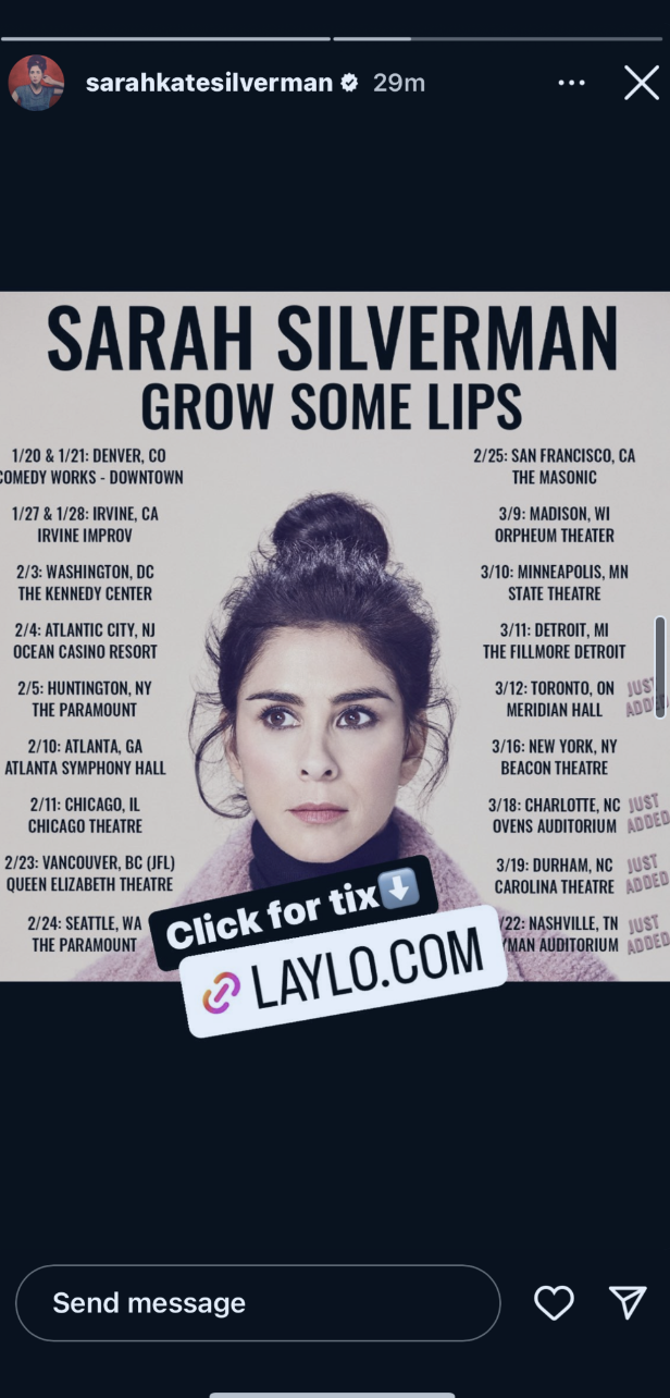 🤣 Check out the example below to see how Sarah Silverman used multidrop to promote her tour on Instagram.