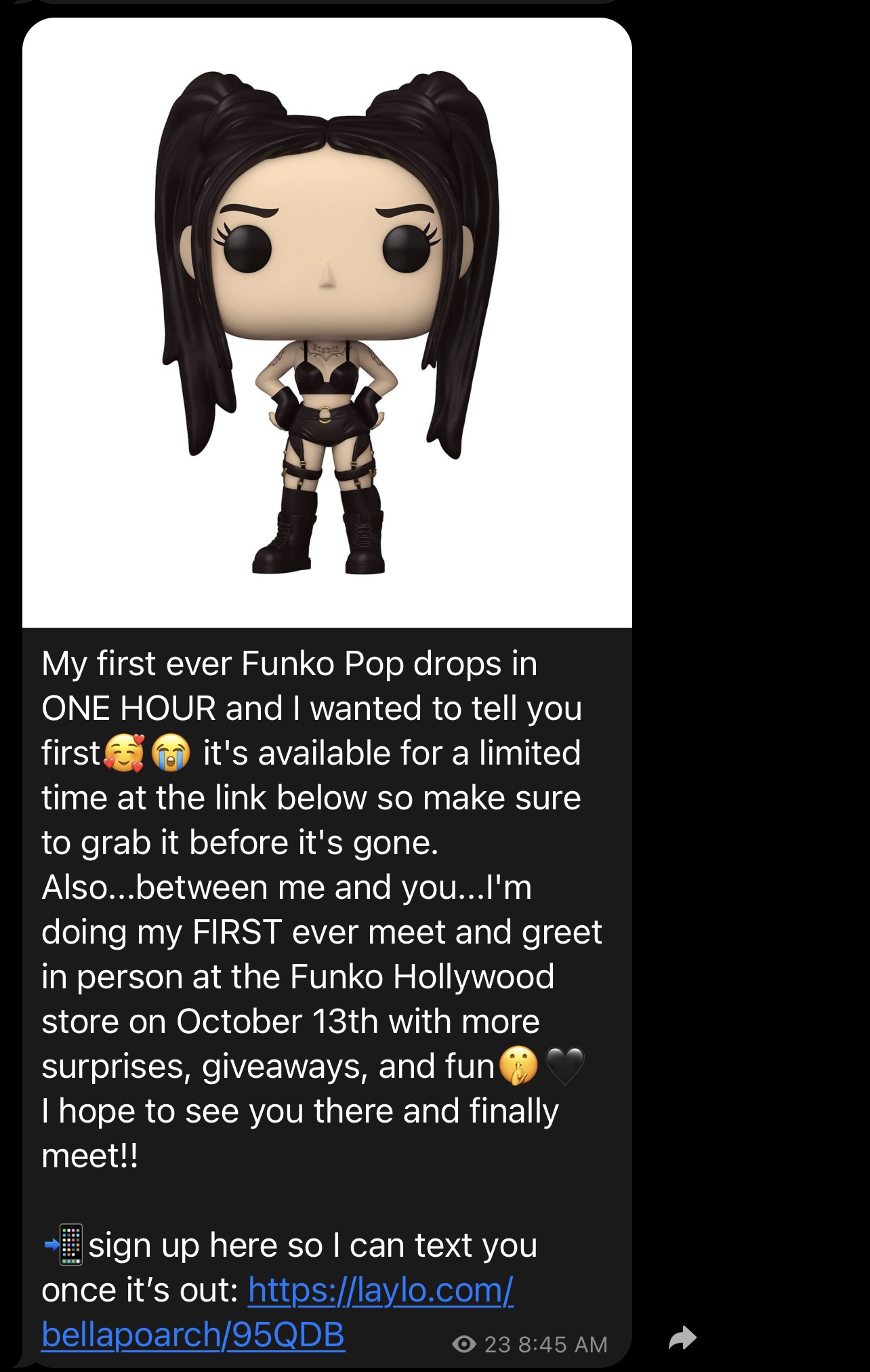 🤝 Bella Poarch hit her fans up an hour before the drop with more exclusive info about a meet and greet!