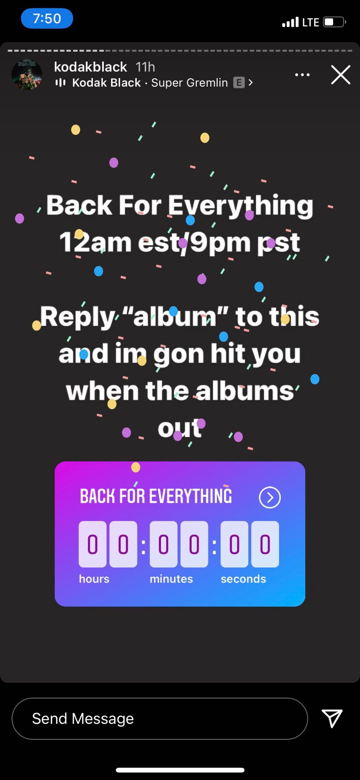 📸 Thousands of fans replied to Kodak Black’s IG story with “album” and received a DM once his album dropped 👇