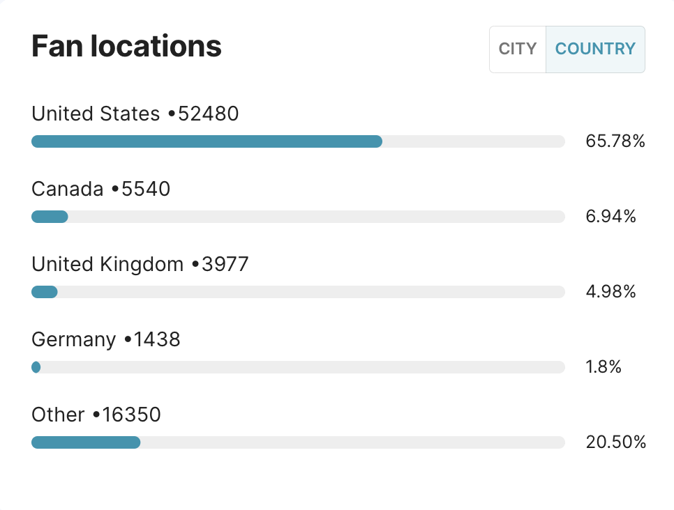 Laylo also gives you a breakdown of RSVPs by location which can help you determine future tour stops.