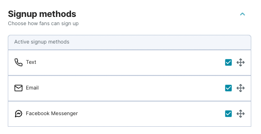 Choose, switch and prioritize which ways fans can sign up to your Laylo.