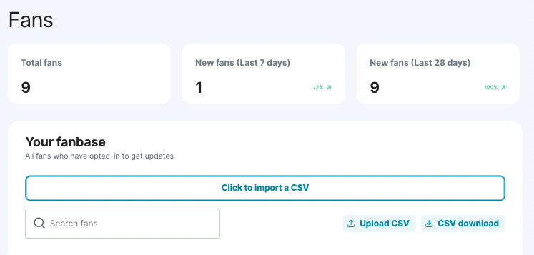 Go to your Fans tab and click Upload a CSV.