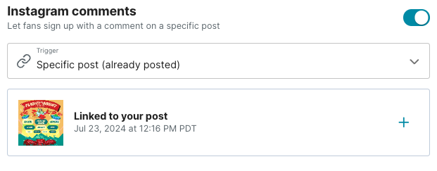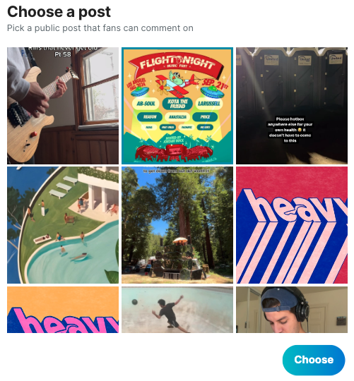 Pick the IG post you want to use. This will send an RSVP confirmation message to any fan who comments on the post.