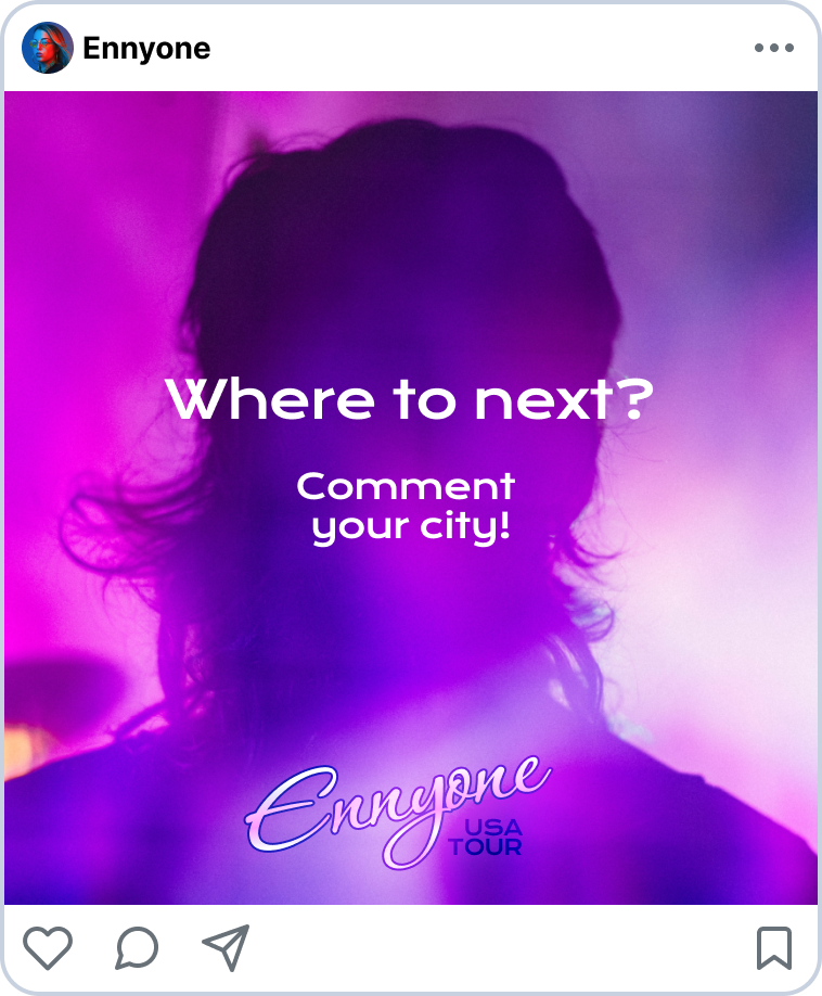 Ask your fans to drop comments on where they want you to perform to tease an upcoming tour.