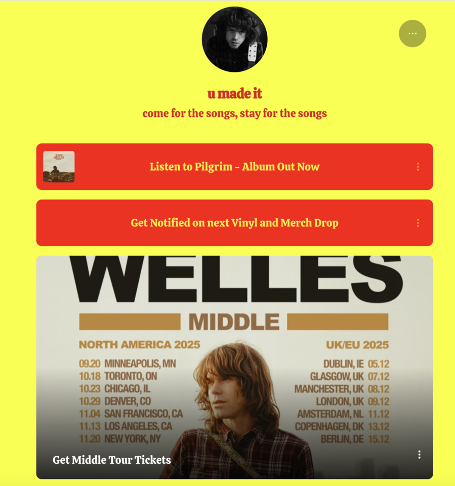 - Integrate your merch with the platforms fans already use, like Spotify, YouTube, and Instagram Shops, so they can discover your products where they’re already engaging with you.
