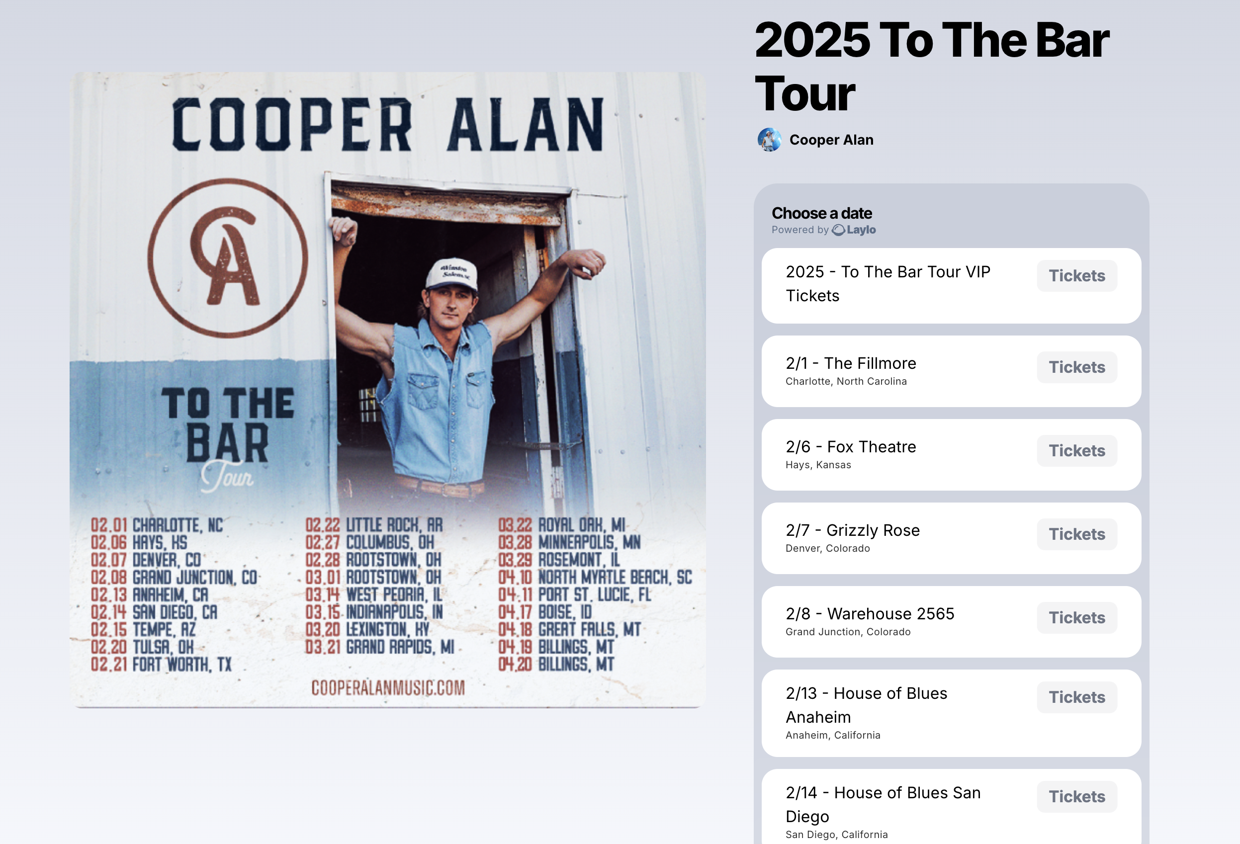 Cooper uses Laylo to run his releases, merch, touring, and giveaways in one place, and to build a fanbase he truly owns.