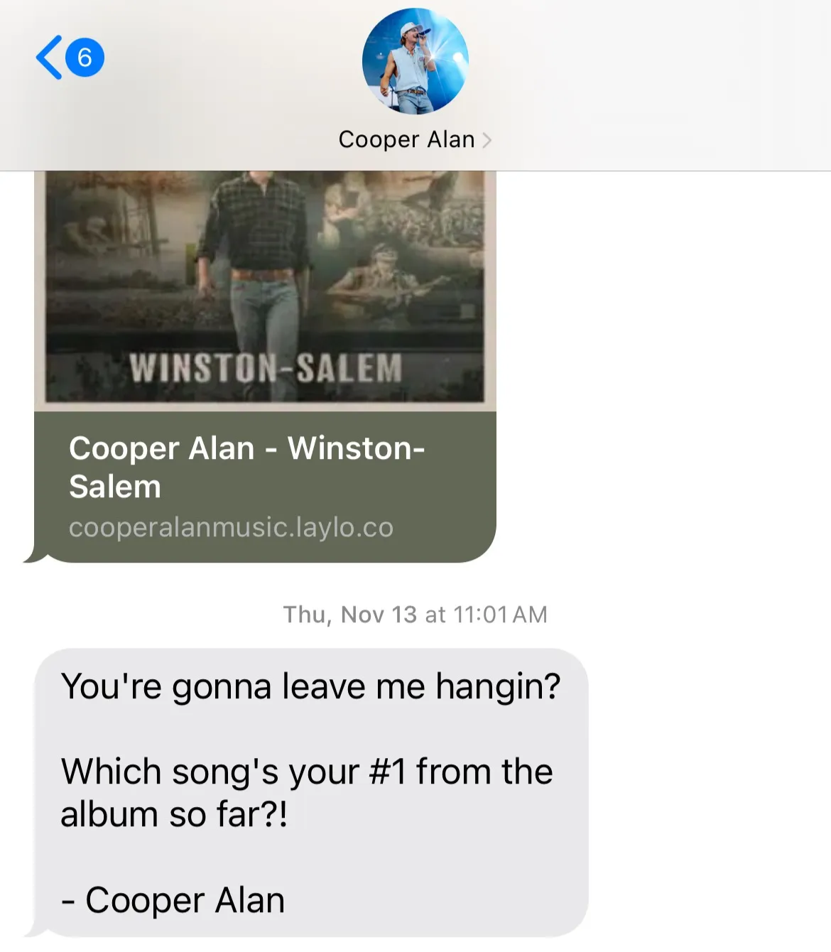 Cooper keeps his fanbase warm and engaged through Laylo’s messaging features, sending fun conversational notes, exciting updates, exclusive content, and targeted messages based on fan behavior - all in his own voice. By leaning into authenticity and timing messages to the right fans at the right moment, he builds trust, boosts open rates, drives long-term retention, and steadily converts casual listeners into superfans.