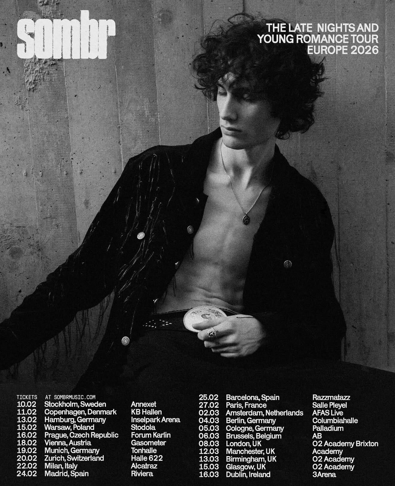 “Sold out instantly. 2 more nights added in London, 1 more night in Paris and Manchester, Zurich, Berlin, and Barcelona upgraded. Thank you.”— Sombr, via Instagram