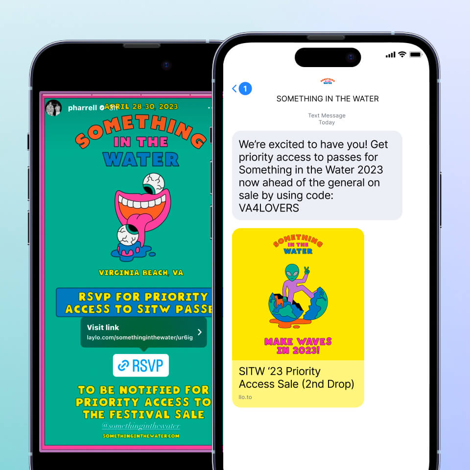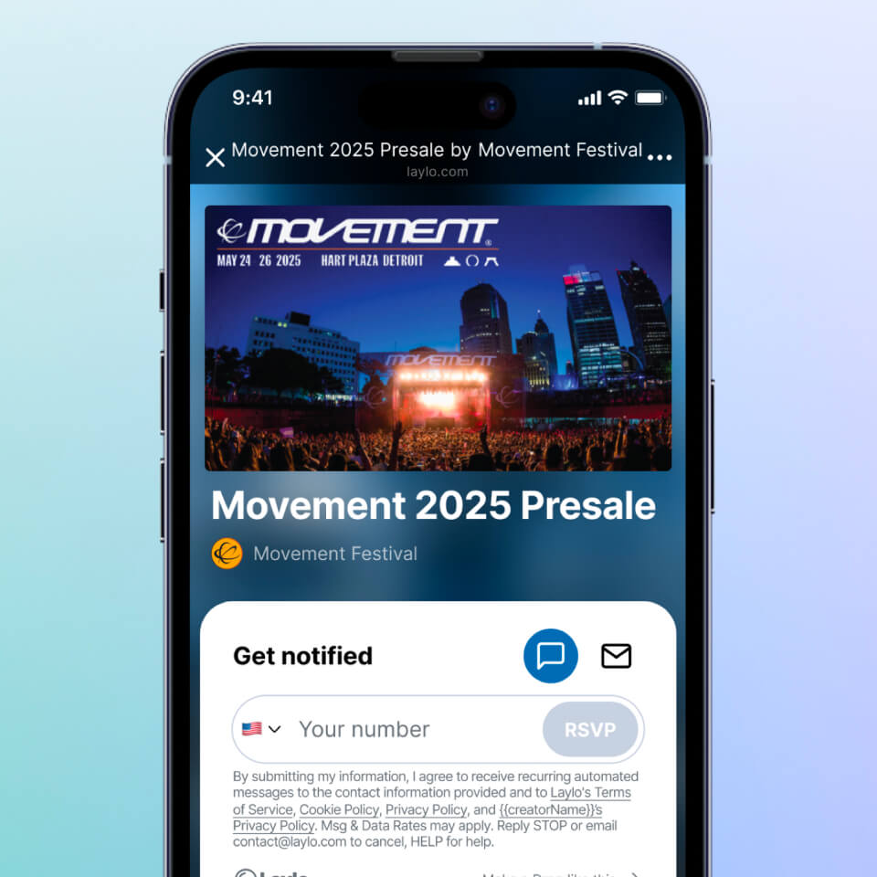 Join 10,000+ brands using Laylo to drop $1B+ in tickets and merch directly to their fans.