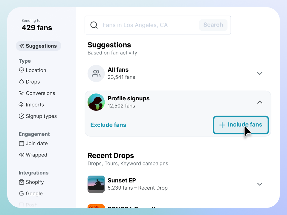 Easily message those fans for influencer campaigns, VIP invites and direct outreach.
