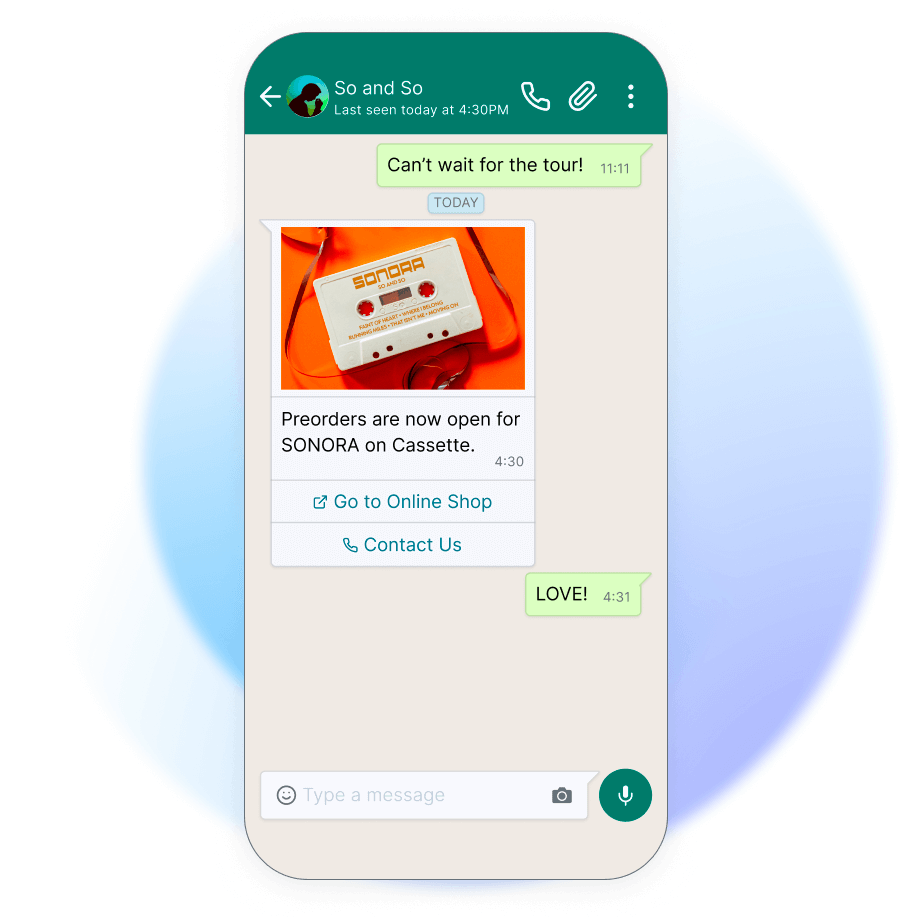 Reach 2B+ fans on WhatsApp. When fans opt in internationally, Laylo verifies their number and routes your messages through WhatsApp automatically.
