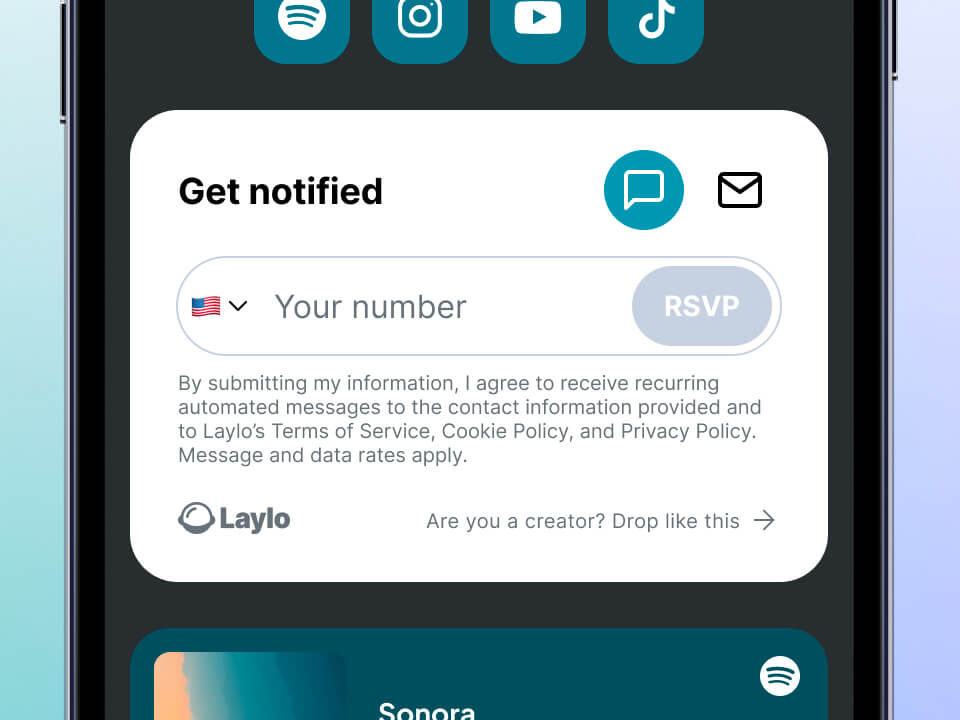 Turn every QR code, Action Page, and ticket into new fans. With Sprouter and Laylo, it’s easy to grow your audience and keep fans engaged after every show and every drop.